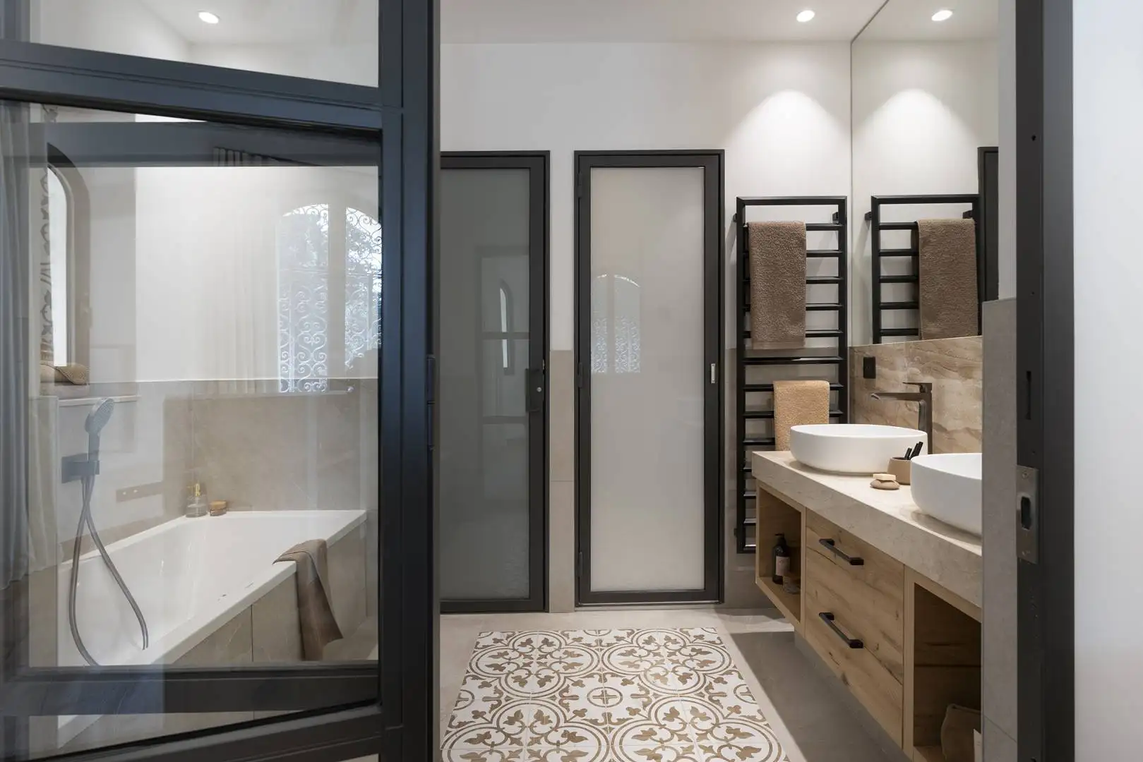 Idéalement située dans l’un des secteurs les plus recherchés de La Croix-Valmer, à seulement 50 mètres de la plage de Gigaro, cette villa de plain-pied des années 1950, entièrement rénovée avec des matériaux nobles, allie le charme de l’ancien au confort et aux prestations contemporaines haut de gamme.