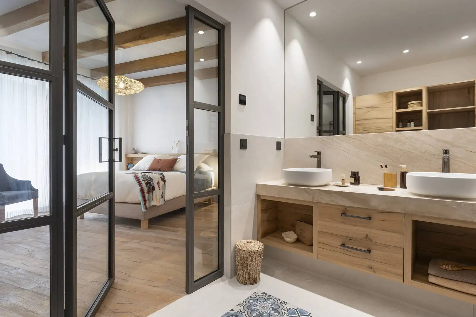 Trois chambres doubles, chacune avec sa propre salle d’eau ou salle de bain.