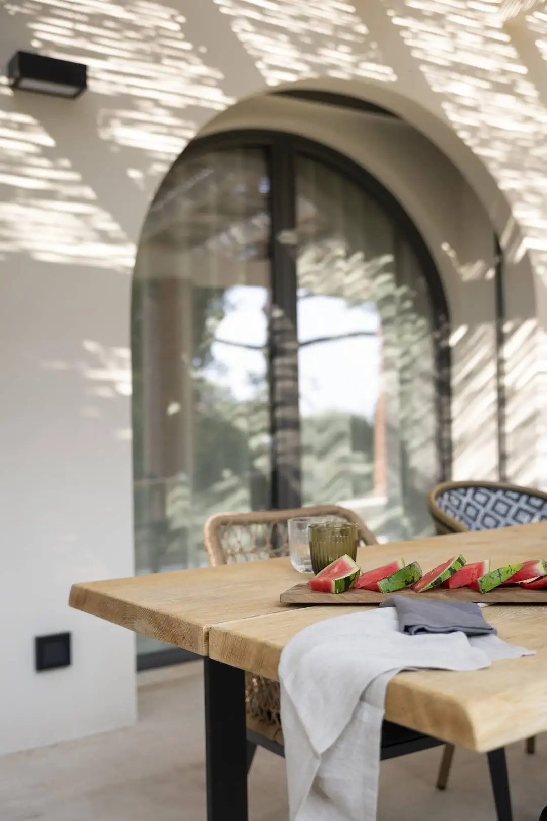 Implantée sur un terrain plat, dans un environnement paisible et arboré, elle propose un cadre de vie idéal pour des vacances en bord de mer, où élégance, simplicité et douceur méditerranéenne se rencontrent.