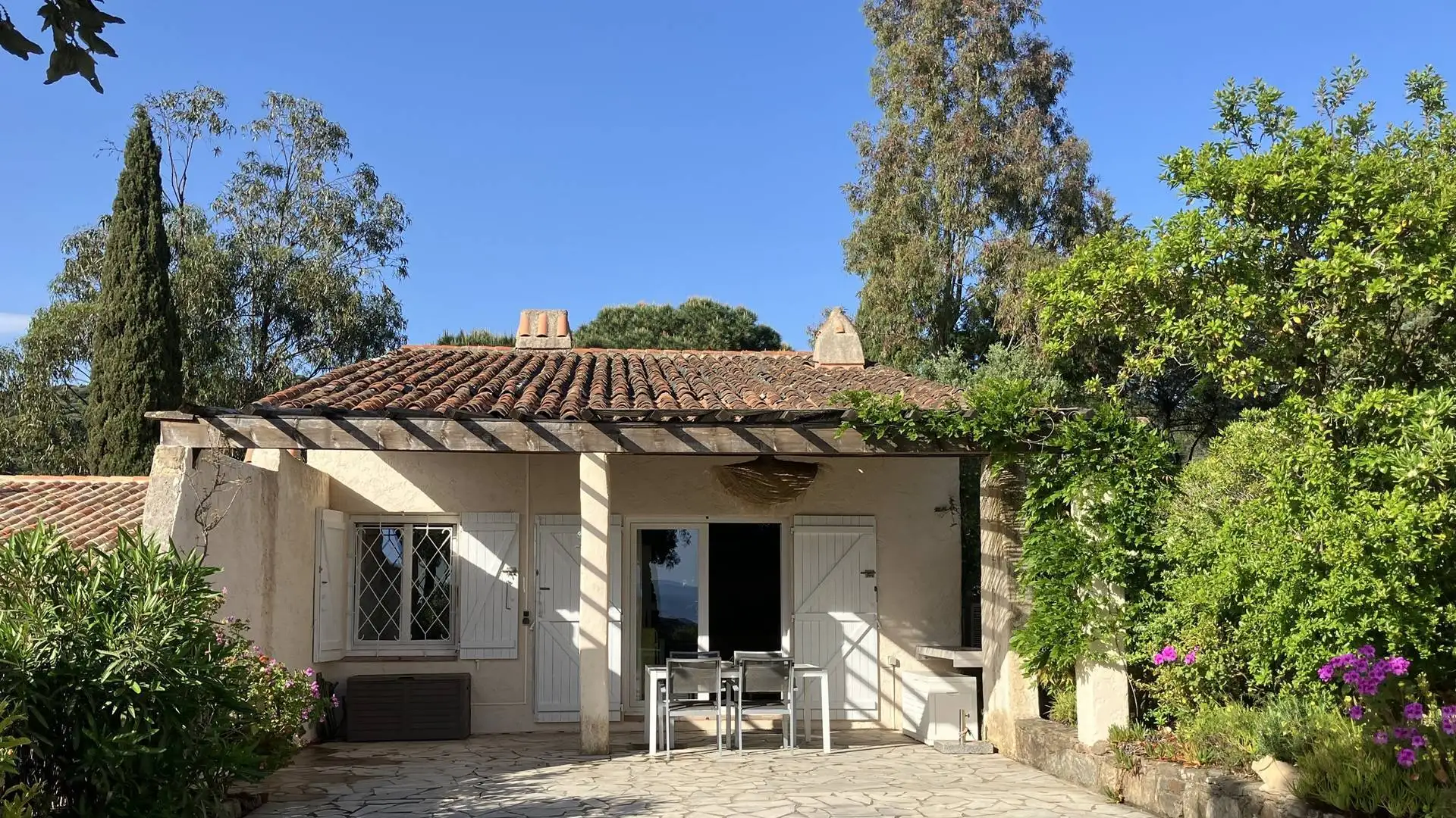 Situé dans le quartier recherché des Bougainvillées, au sein des Mas de Gigaro, ce mas offre un cadre agréable pour des vacances au calme, avec un grand jardin et une jolie vue sur la mer et un accès sans marche du parking. Il peut accueillir jusqu’à six personnes et convient particulièrement à un couple avec enfants ou à deux couples souhaitant séjourner ensemble dans de bonnes conditions de confort.