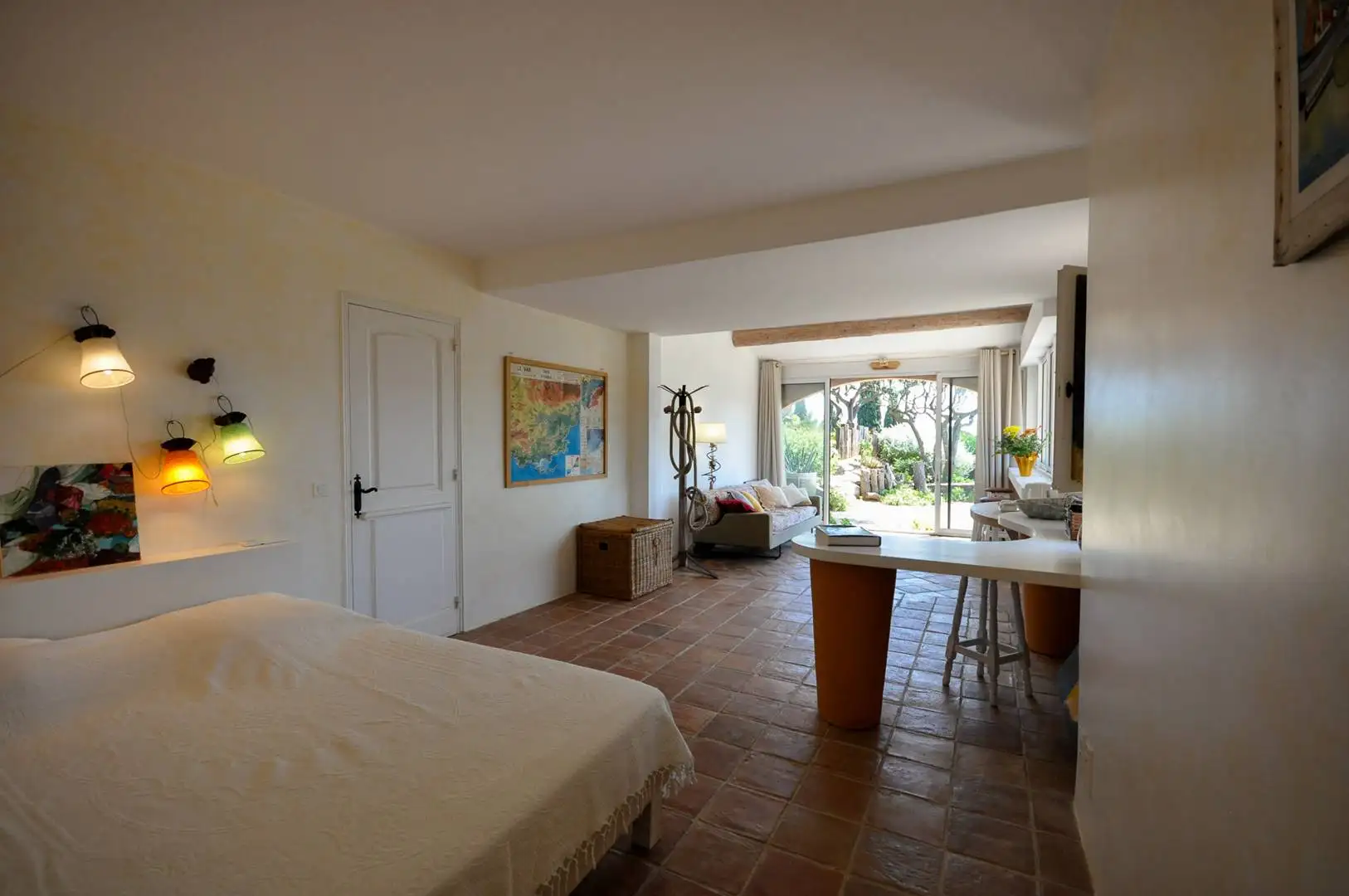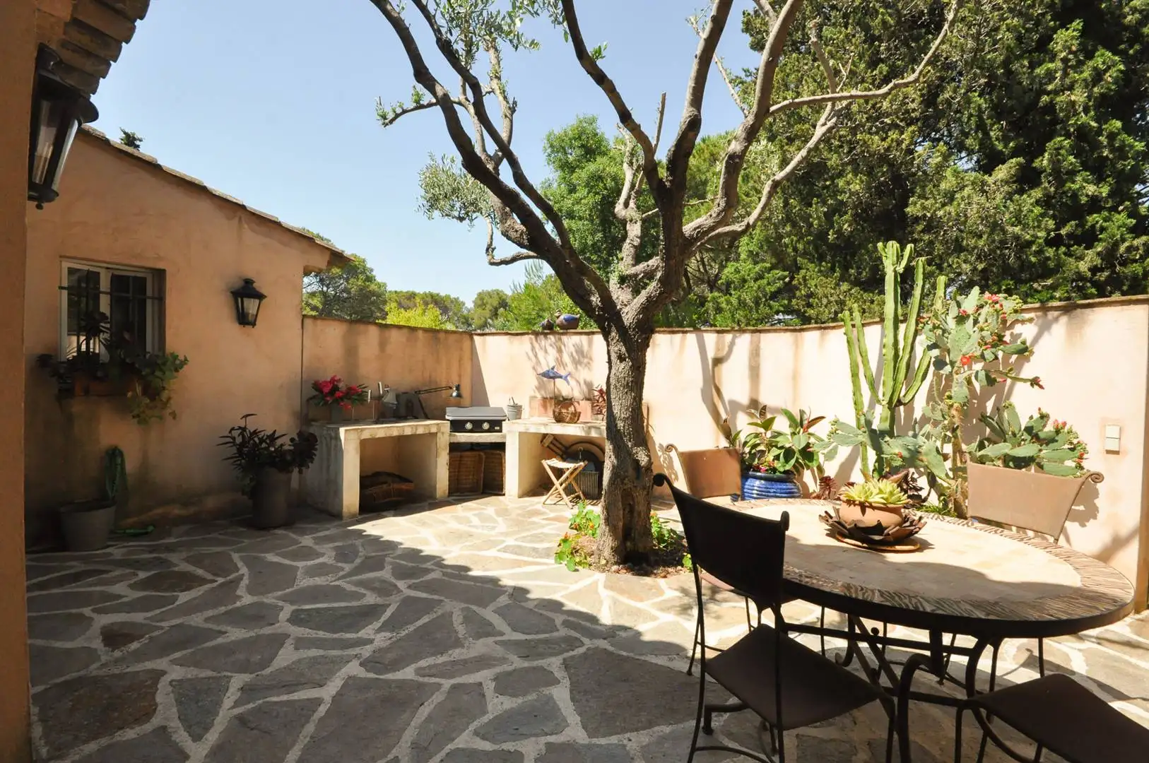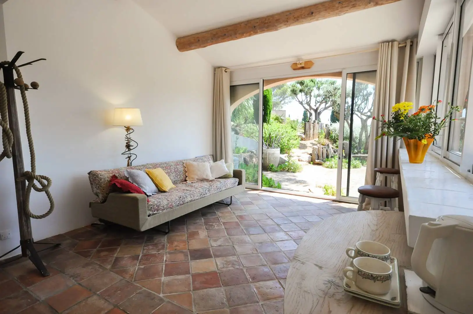 Dans un environnement calme situé à une centaine de mètres de la mer, entre la Bouillabaisse et le Vergeron, son style et sa décoration chaleureuse se prêtent idéalement au farniente en contemplant les îles et la Baie de Cavalaire.