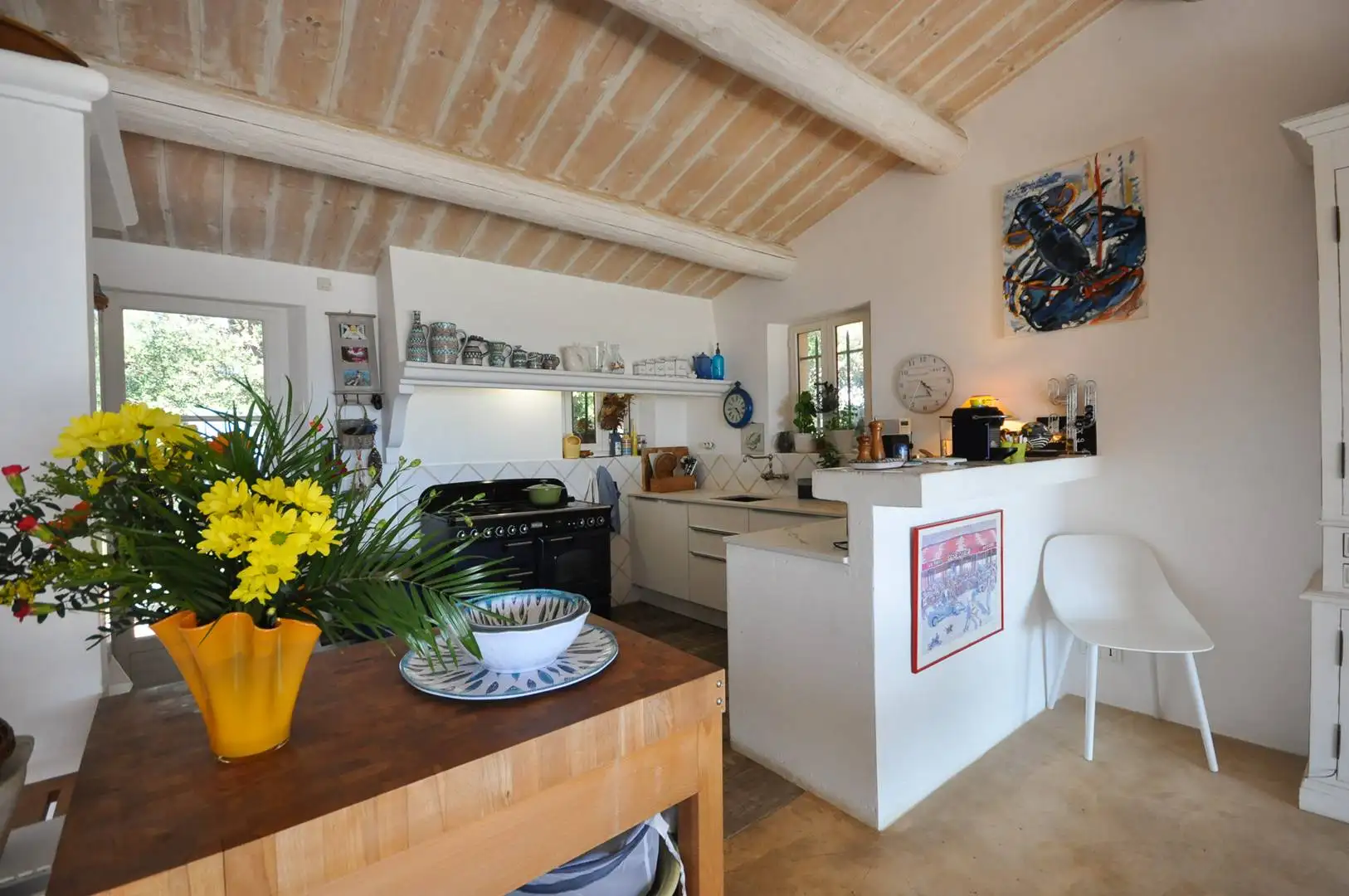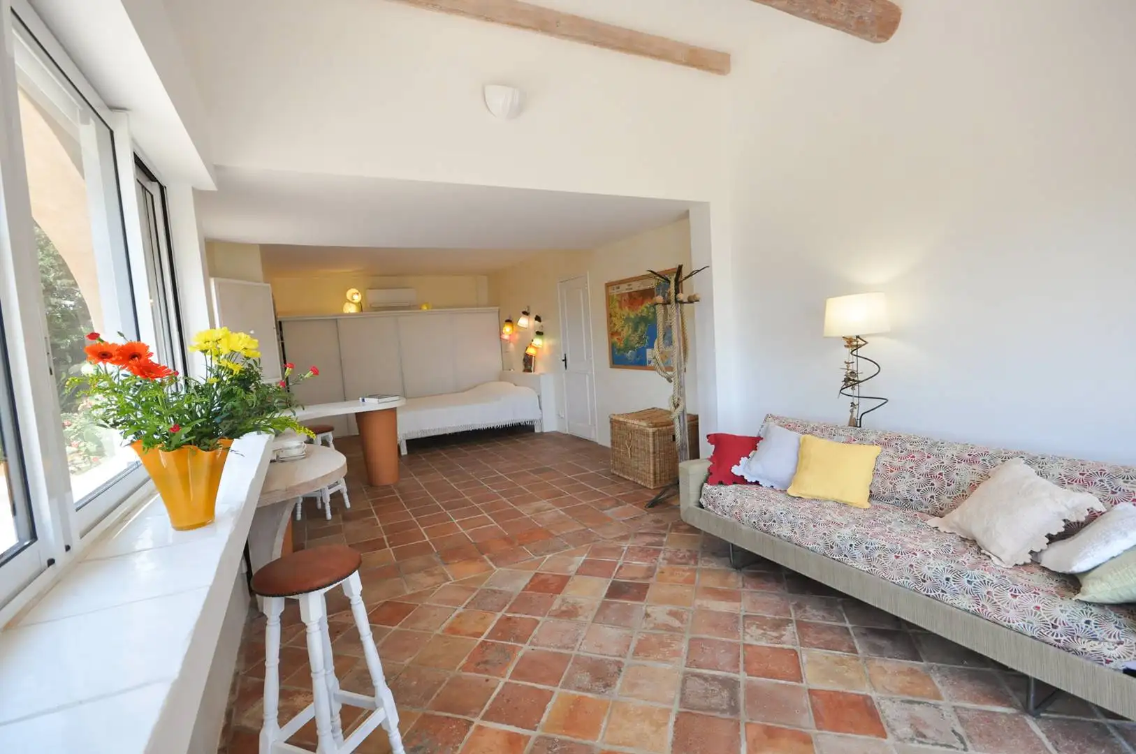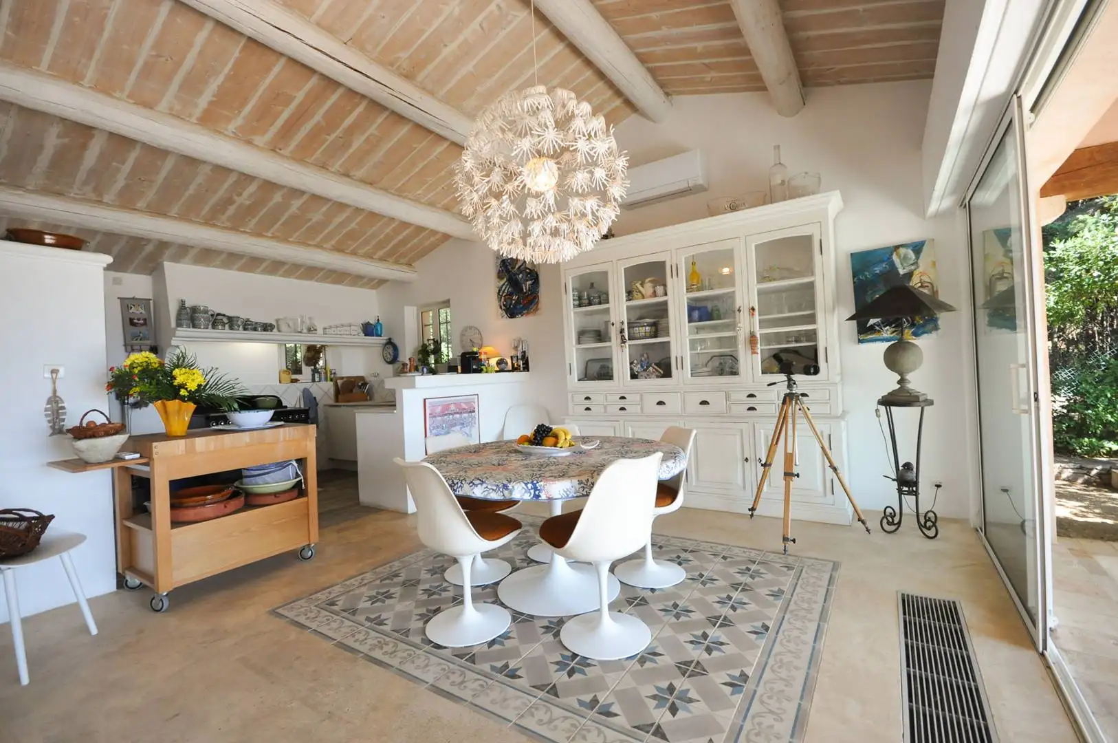 Dans un environnement calme situé à une centaine de mètres de la mer, entre la Bouillabaisse et le Vergeron, son style et sa décoration chaleureuse se prêtent idéalement au farniente en contemplant les îles et la Baie de Cavalaire.