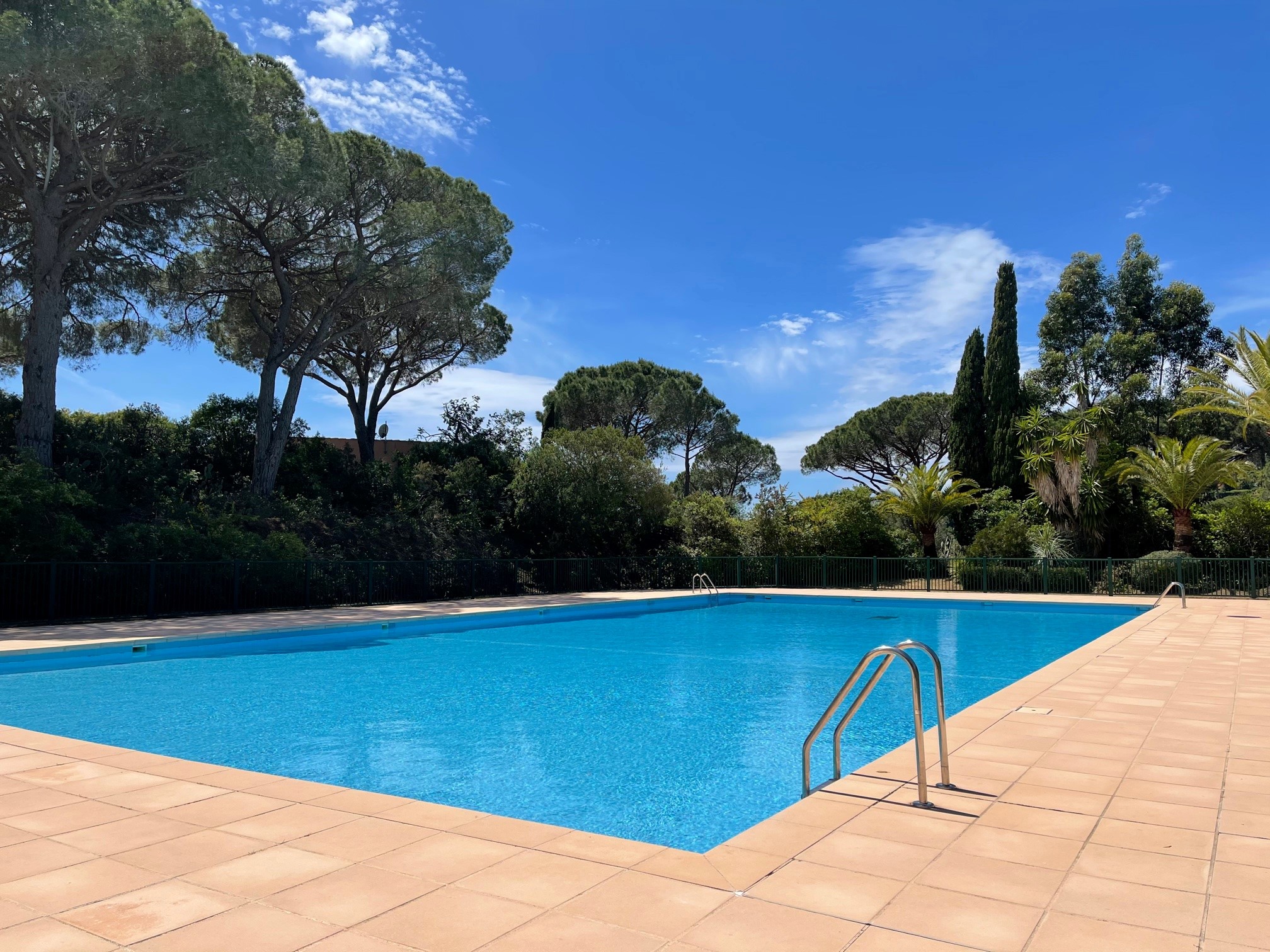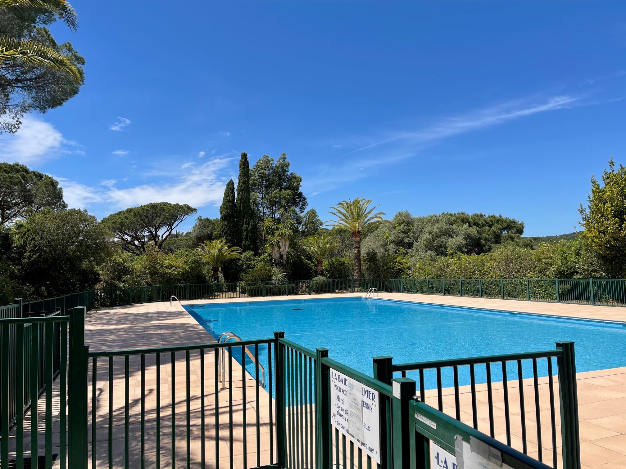 Mitoyenne de deux côtés, la maison dispose également d’une place de parking privative et d’un accès facile aux équipements du domaine : piscine à environ 200 m et trois courts de tennis à près de 300 m. Les sentiers littoraux et les chemins forestiers du parc de Cap Lardier débutent à moins de 100 m, offrant des promenades magnifiques au cœur d’une nature préservée.